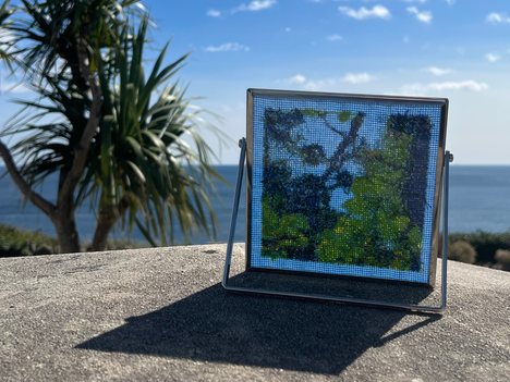'Where light leaks through trees' was created with 12 colours of thread and is made up of 4,257 individual crosses.